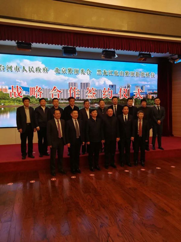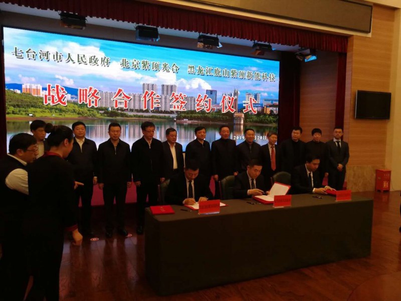 2019年1月20日上午,七臺河市人民政府、北京紫頂光合企業(yè)管理中心(有限合伙)、黑龍江鹿山紫頂新能科技有限公司簽約儀式在市專家接待中心舉行。市委書記楊廷雙,市委副書記、市長賈君,市委常委、秘書長蔣和慶,市政府副市長王義光,市政府秘書長陳志、鹿山集團鐘金海等領導出席簽約儀式。市委常委、副市長安虎賁主持簽約儀式。